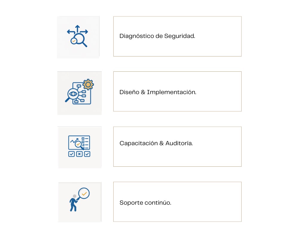 Nuestro servicio abarca la evaluación de vulnerabilidades, la revisión de protocolos, el diseño de estrategias y el acompañamiento en su ejecución. Si tu organización necesita fortalecer su estructura de seguridad, nuestro equipo está preparado para asesorarte con visión estratégica, experiencia técnica y soluciones concretas.